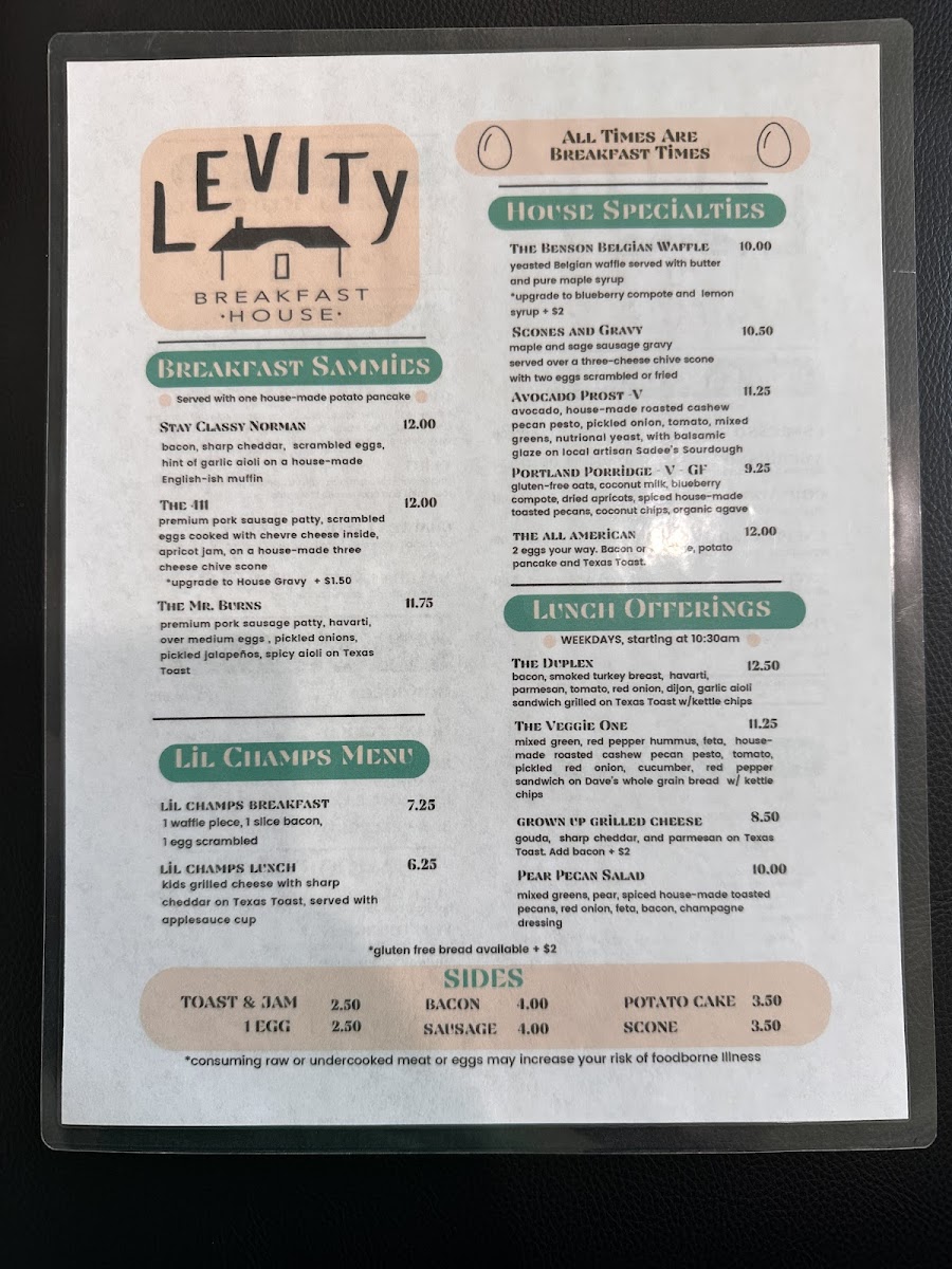 Welcome to Levity Breakfast House, a charming cafe nestled in a converted century-old house located at 309 S Peters Ave, Norman, OK. This delightful eatery has quickly carved a niche for itself, offering an enticing menu that showcases the best of breakfast dining.